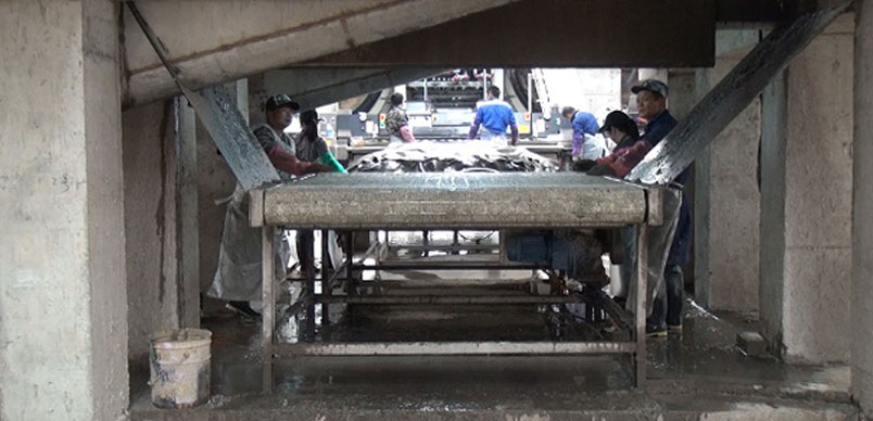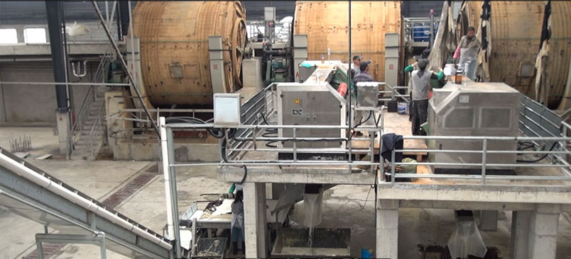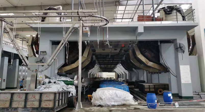 GZGCL With the higher and higher requirements of national tanning enterprises, the design and processing requirements of tanning machinery are also gradually improved. This requires tannery machinery processing higher efficiency, lower energy consumption, automation, intelligent, higher safety, reduce the number of operators and labor intensity. To realize the automation, intelligence and information upgrade of tannery enterprises. The automatic conveying line produced by our company has leather conveying (into and come out of the drum), automatic water supply, automatic chemical material feeding system; Automatic control system of leather production and processing, on-line detection and control technology of leather production process; Tanning waste liquid circulation system and supporting testing equipment. 1. Fur conveyor line( into the drum) The conveyor belt transports the leather directly from the fur storehouse to the drum that needs to be put into production, which can be weighed automatically. After reaching the specified weight, the drum door closes, and the conveyor belt transports the leather to other drum according to the set program. 2. Automatic line (come out of the drum) used for soaked skin (pickled) The soaked leather is discharged from the drum and automatically falls to the drum line. The drum line will transport the leather to the designated place, and then it is conveyed to the high table of the meat removing machine with the skin hanging line. The leather will automatically fall to the meat removing machine for removing meat. 3. The conveying line is used for expanding the skin into the drum and conveying meat dregs After removing the meat, the skin automatically slides to the conveying line (due to the different tanneries’ technology, some tanneries add an automatic conveying platform here for trimming),After the conveyor line is automatically weighed, it is sent to the designated drum for ash dipping and expansion. The meat dregs scraped from the skin are sent to the meat dregs press by the meat dregs conveying line. 4. Conveying line (come out of the drum) used for limed skin After liming and expansion, turn the drum to pour the skin to the conveying line, the conveying line will transfer the skin to the designated area, and use the hanging line to transfer the skin to the upper part of the high table meat remover, and the skin will automatically fall into the feeding mechanism of the meat remover for meat removal. The meat dregs conveying line transfers the meat dregs to the meat dregs press. 5. Conveying platform After the liming skin is removed, it will fall onto the conveying platform automatically. The operator will finish trimming and stacking the leather. The neatly stacked liming skin will be transported to the workbench of the cutting machine, and the operator will conduct the cutting of the leather. 6. Tanning line into the drum After finishing the cutting, upper leather is pulled out from the cutting machine by the automatic pulling device and falls to the tanning line into the drum,the conveyor line automatically measures the weight of the leather and sends it to the designated drum for tanning. After reaching the specified weight, the drum door closes and the conveyor belt transports the leather to other drum according to the set program. 7. Split leather conveyor line The split leather automatically drops to the split leather conveyor line after cutting, and can be delivered to the designated area according to different requirements of customers. Leather automatic production line is a distinctive personalized product, according to the company’s production, technology, site, demand and other overall planning to design, according to the company’s practice over the years, the new tannery must be incorporated as soon as possible, after overall consideration can be done very ideal. Limited by the production efficiency of meat removal and layer cutting machine, it is advisable for an assembly line to produce about 2000 pieces per day.A production line of tanning water plant can be operated by more than 10 skilled workers, saving one third of human resources. Main technical parameters and configuration of the conveyor belt 1. The belt conveying speed is 24m/min. |